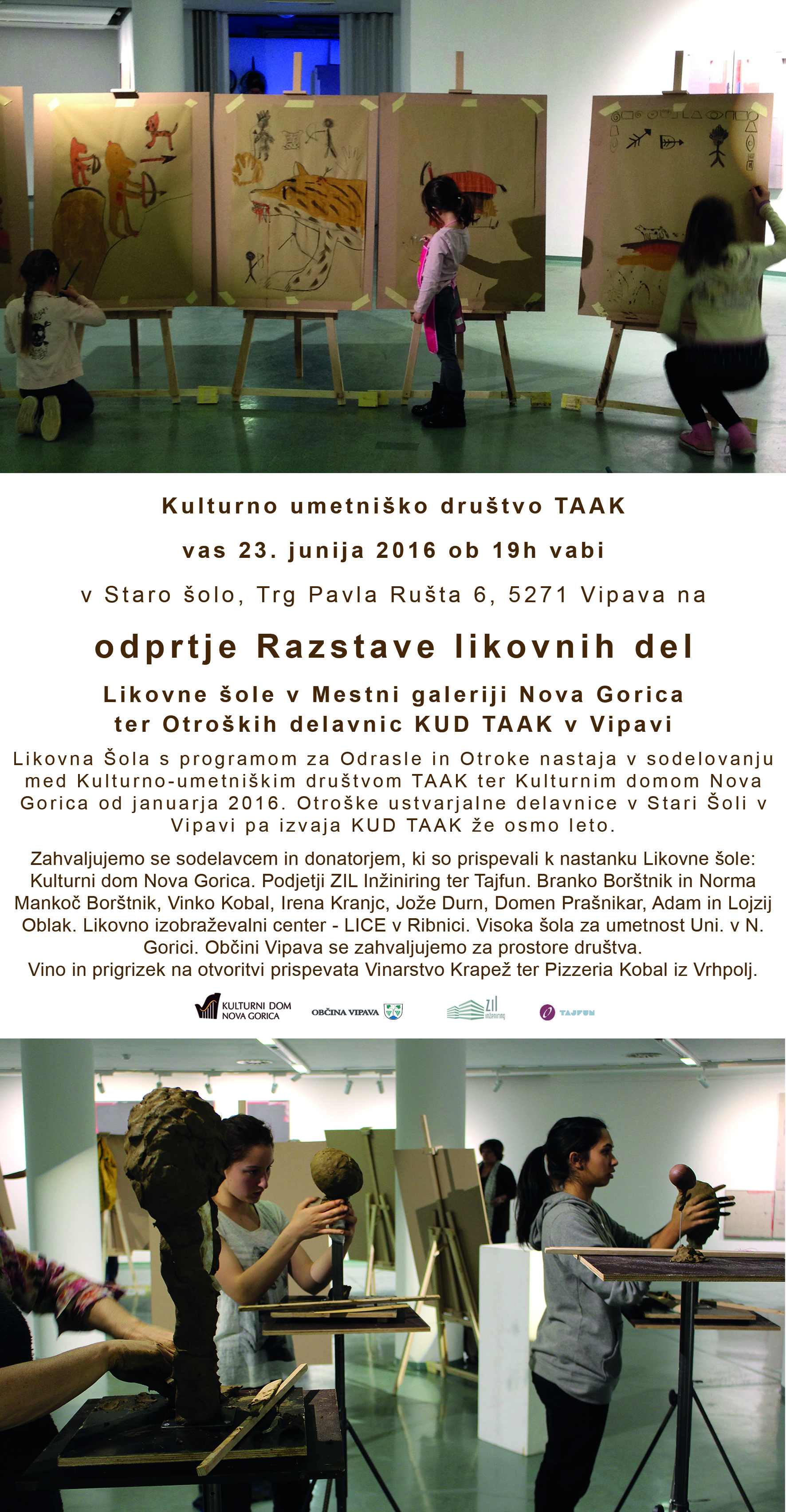 the Art School at the Nova Gorica City Art Gallery (The school was founded in 2016 on the initiative of sculptors Katja Oblak, Anja Kranjc and Julij Borštnik, in collaboration with the Nova Gorica Cultural Centre and KUD TAAK, from which the association Stvarnost took over the responsibilities in 2018. )