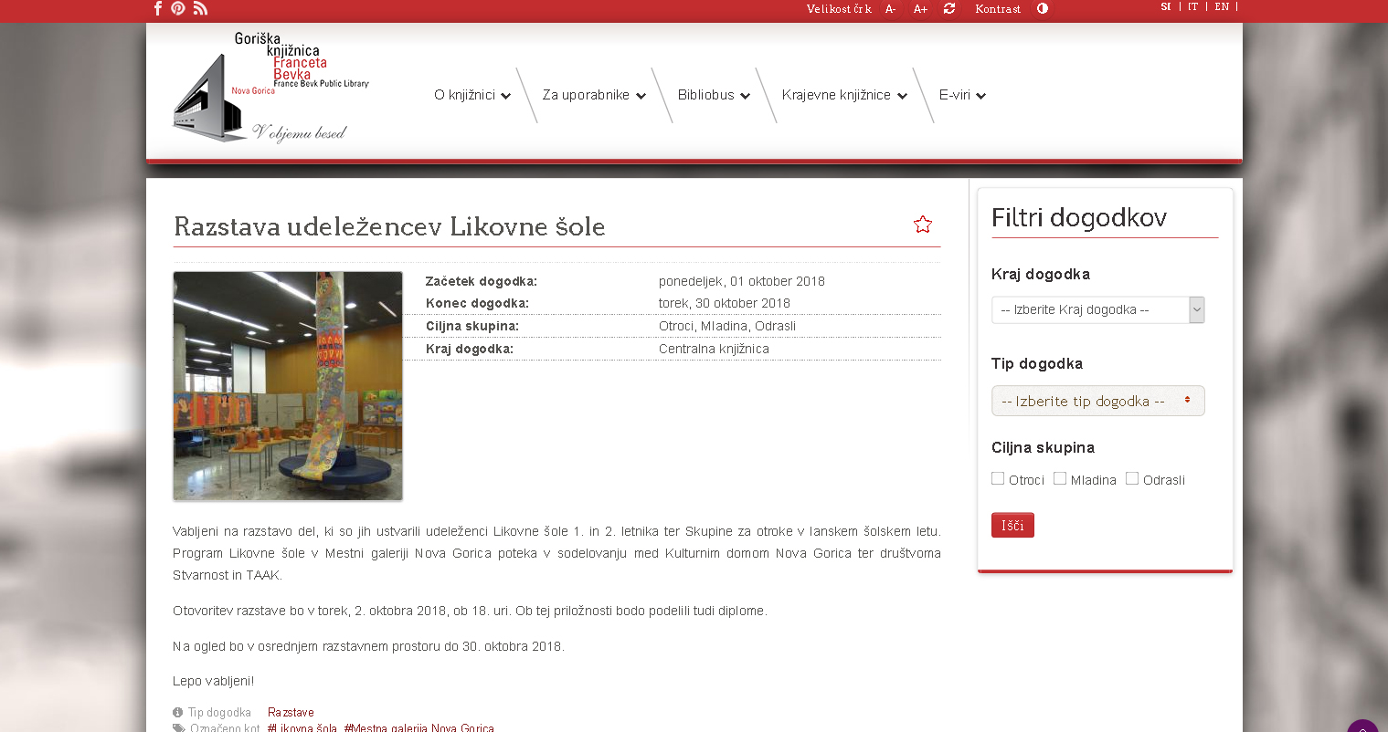 Exhibition of the participants of the Art School in the Goriška library of France Bevk, October 2018. |